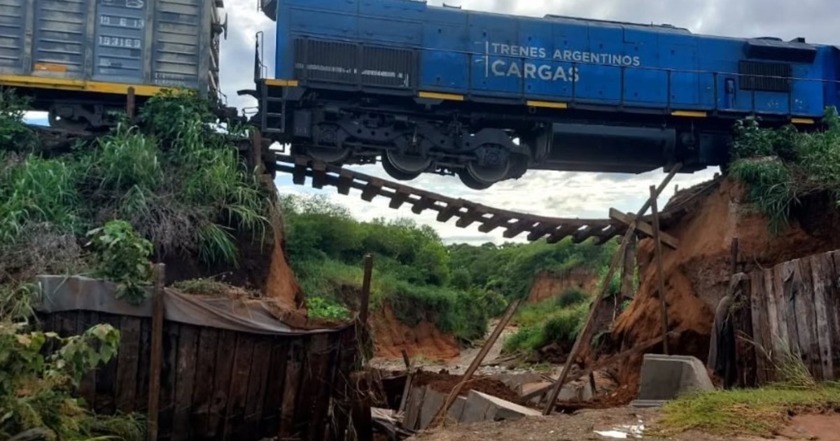 Insólito: se derrumbó un puente en Salta y un tren de carga quedó suspendido en el aire