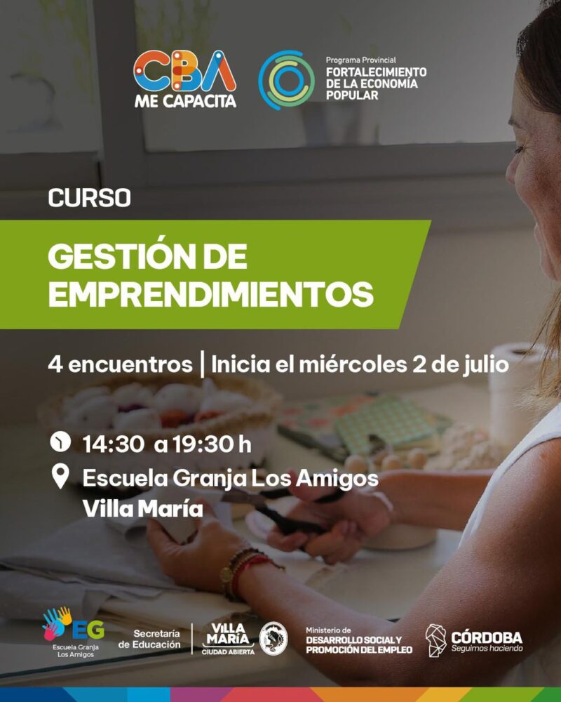 La Municipalidad de Villa María informa que tendrá lugar el curso de “Gestión de Emprendimientos”.