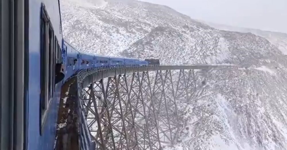 Una tormenta de nieve sorprendió a los pasajeros del Tren a las Nubes y le dio al recorrido un marco único