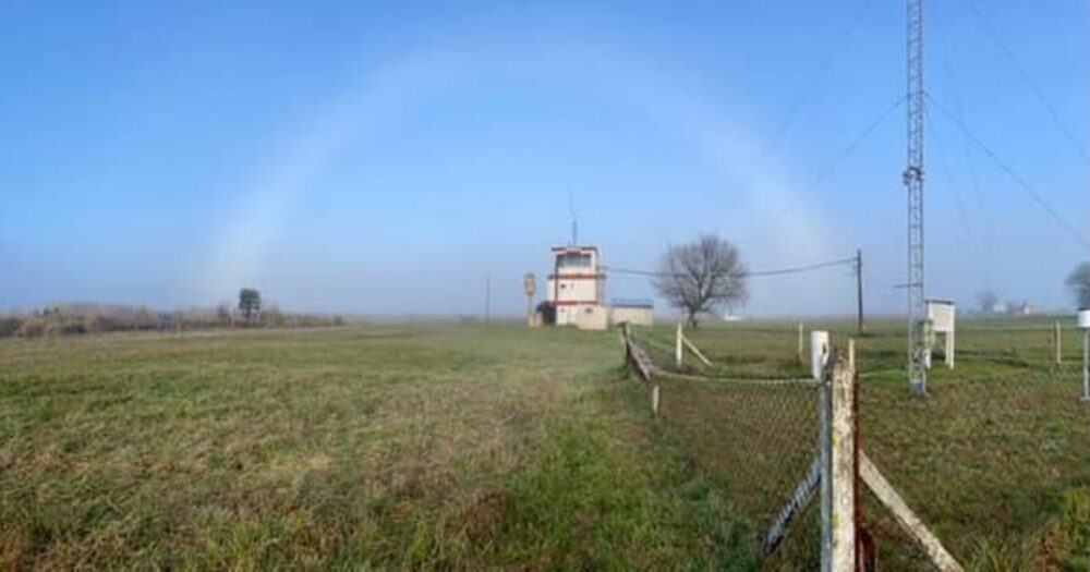 • En la mañana neblinosa de este lunes los meteorólogos registraron en Villa Gesell un arcoíris completamente blanco.