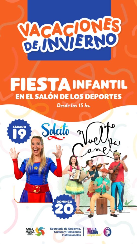 La Municipalidad de Villa María y el Ente de Deporte y Turismo invitan a formar parte de la “Fiesta Infantil” que dará cierre al cronograma de actividades impulsadas por el Gobierno local en el marco de las vacaciones de invierno.