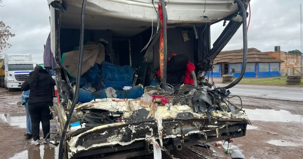 - El colectivo, que volvía de un tour de compras, impactó de frente con un camión Scania en la ruta 11.