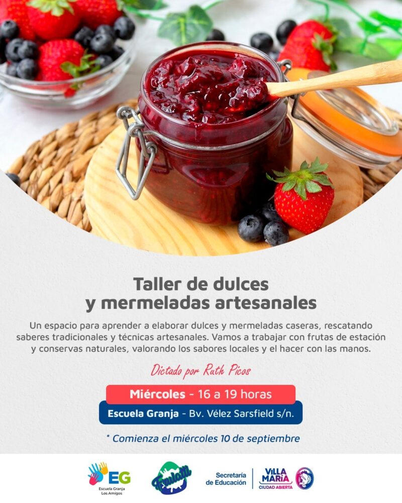 EN SEPTIEMBRE INICIAN TALLERES GRATUITOS EN LA ESCUELA GRANJA Se capacitará en Cocina Artesanal, Arte Textil, Mermeladas y Huerta Agroecológica. La Municipalidad de Villa María, a través de la Secretaría de Educación, invita a la comunidad a participar de los nuevos talleres que se dictarán en la Escuela Granja “Los Amigos”, con propuestas abiertas y gratuitas para todas las edades. Los espacios de formación tienen como objetivo promover la educación ambiental, la alimentación saludable, la producción sustentable y el rescate de saberes tradicionales. Las propuestas son: Taller de huerta agroecológica:…