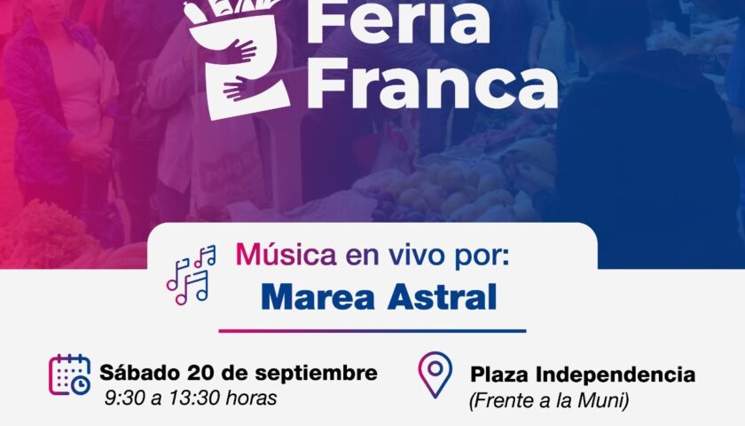 La Municipalidad de Villa María informa que este sábado 20 de septiembre se llevará adelante una nueva edición de la Feria Franca en Plaza Independencia, frente al edificio municipal.