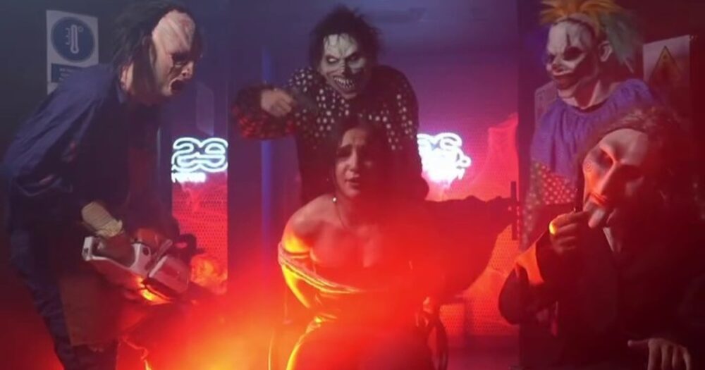 - En las imágenes se ven escenas violentas con hombres armados y enmascarados que asaltan y raptan a una joven.